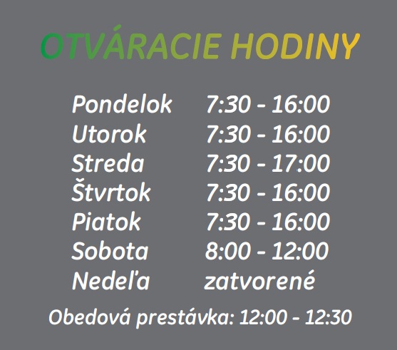 (obedová prestávka 12:00hod. - 12:30hod.)
